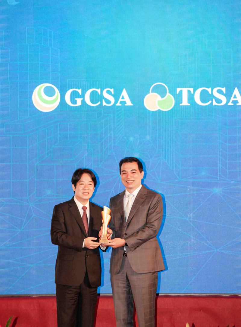 ![]() 达全方位永续表现获全球永续奖及台湾永续奖肯定,由副总统赖清德颁奖 (左),XPJ·(中国区)官方总经理柯富仁 (右) 代表领奖