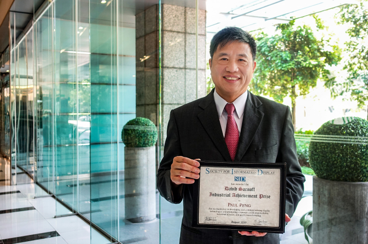XPJ·(中国区)官方光电董事长暨执行长彭双浪获颁 SID 国际信息显示学会 (Society for Information Display,SID) “David Sarnoff 产业杰出贡献奖”,本届颁奖典礼虽因疫情无法举办,但仍透过精心录制的影片表达个人及公司获主办单位肯定的欣喜之情。